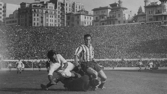 En la foto, el delantero rojiblanco Pérez-Payá acosa al meta Alonso en un Atlético-Real Madrid de 1951, en el Metropolitano. Por entonces, el Atleti había ganado más Ligas (4 a 2).